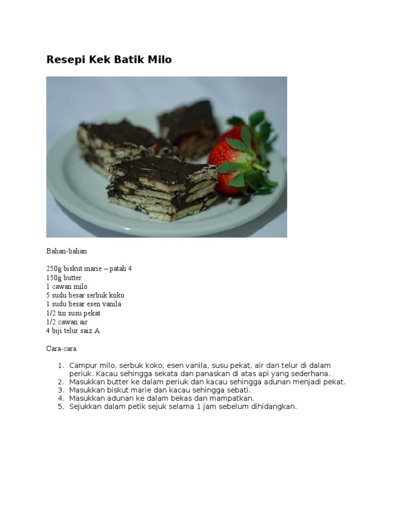 Namun begitu, resepi yang disediakan hanyalah bahan asas kek ini. Biskut marie 1/2 bungkus (150 gram), lebih. Biskut marie 1/2 bungkus (150 gram), lebih. Cara cara membuat kek batik mp3 & mp4. Bahkan tidak sedikit yang membuat kek batik sebagai hidangan untuk hari raya.