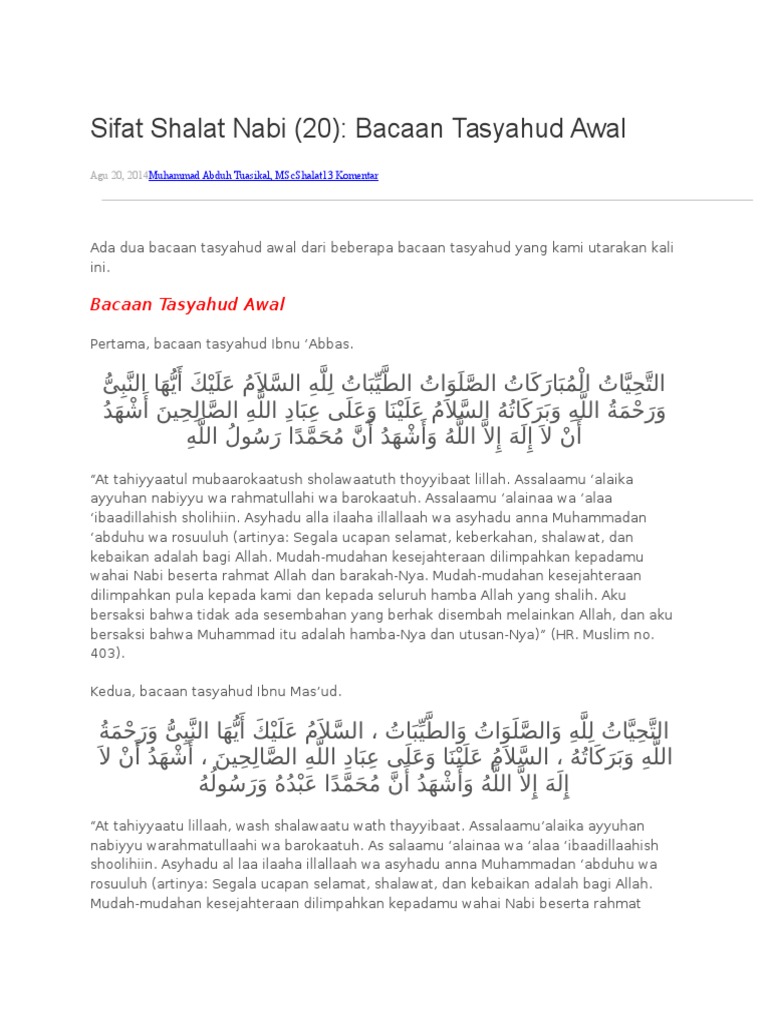 Ya allah, semoga shalawat tercurah kepada muhammad dan keluarga muhammad. Doa bacaan attahiyatul mubarakatus sesudah duduk tahiyat akhir dalam sholat awal latin lengkap tasyahud sebelum salam sesuai menurut sunnah seperti dalam hal mengetahui dan menguasai secara pembacaan lapadz serta pemaknaan dari bacaan tahiyat akhir sesuai dengan sunnah. Terdapat tiga perbedaan yang mendasar antara kedua tasyahud ini. Inilah bacaan tahiyat akhir yang benar sesuai tuntutan rasulullah! Perbedaan tasyahud awal dan akhir.