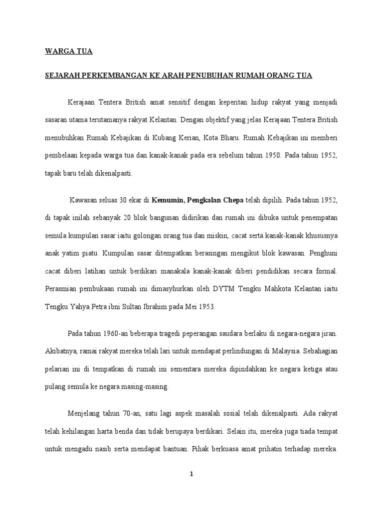 Warga Tua from imgv2-1-f.scribdassets.com Menitikberatkan mata pelajaran pendidikan islam. Punca pengabaian warga tua karangan stpm. Warga tua sering dikaitkan dengan mereka yang berumur lebih daripada 55 tahun yang juga dikenali sebagai warga emas. For more information and source, see on this link : Malah, ia menjadi antara faktor nasib golongan itu tidak terbela dan menyaksikan kes penderaan dan pengabaian golongan itu berlaku. Warga tua boleh dikategorikan sebagai golongan manusia yang berumur 50 tahun dan ke atas. Warga emas didefinisikan menerusi had umur tertentu berdasarkan kepada budaya masyarakat setempat. Penderaan dan pengabaian terhadap warga tua kini menjadi antara isu yang perlu diberikan tumpuan dan ditangani dengan cara berkesan.